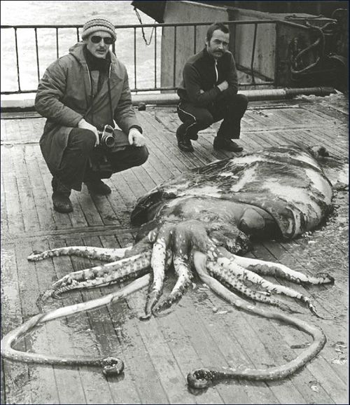 “El peso máximo de estos calamares colosales, ronda los 500 kg, estimado en base a unos restos parciales que se encontraron en 1925 en el estómago de un cachalote. Se especula que podría ser aún mayor, con 28 y aún más metros de punta a punta. Hay que tener en cuenta que muchos de estos metros están compuestos por sus dos largos tentáculos prensiles que pueden medir más que un autobús (sus ocho brazos restantes son más cortos). Esto lo transformaría en el invertebrado más grande conocido. Hasta el momento, sólo se han descubierto 6 ejemplares de la especie.”