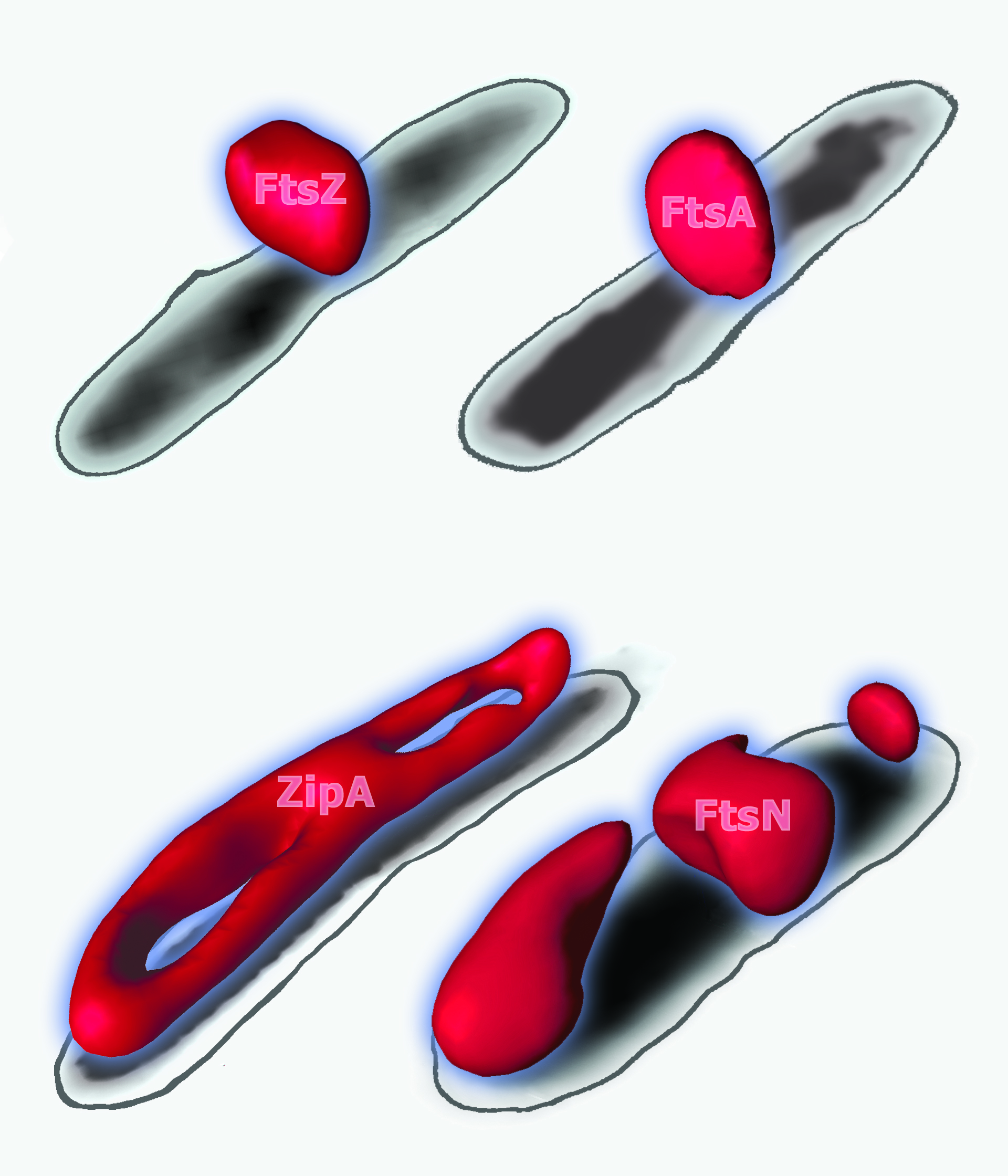 El proyecto DIVINOCELL buscará inhibidores de proteínas que se localizan en el centro de la bacteria, justo por donde E. coli produce un tabique para dividirse dando dos células hijas. Vicente et al. 2006. J. Bacteriol. 188: 19-27.
