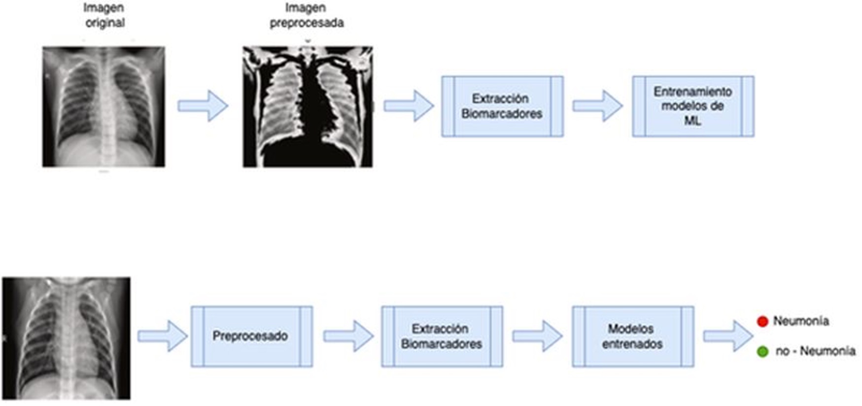 Proceso de generación de los modelos de machine learning y detección de neumonía. Fuente: Consuelo Gonzalo Martín.