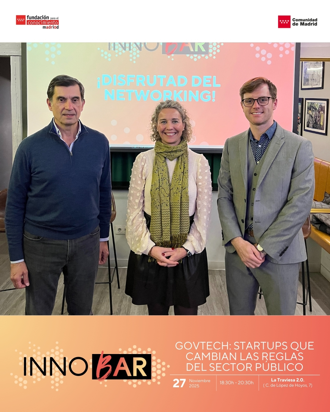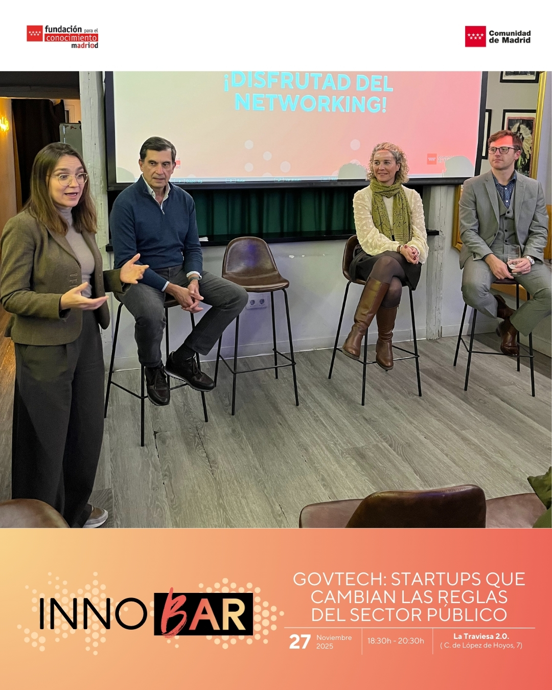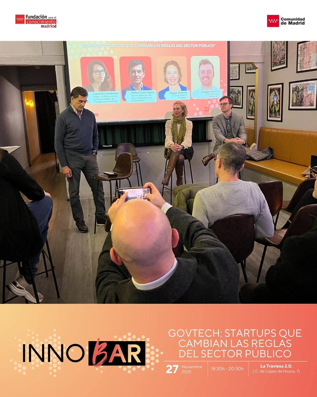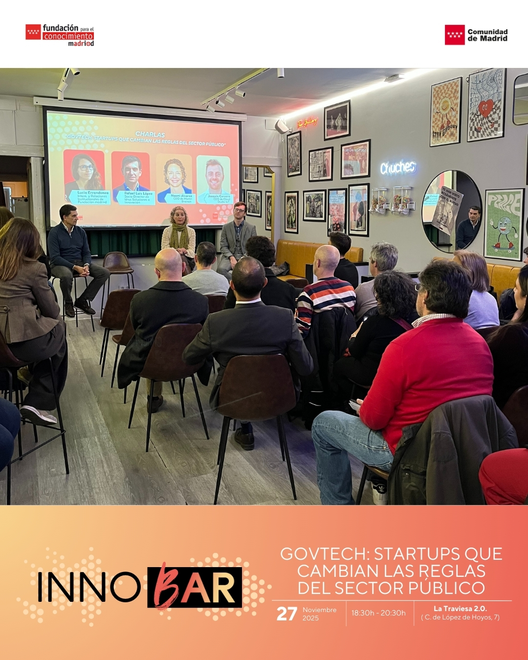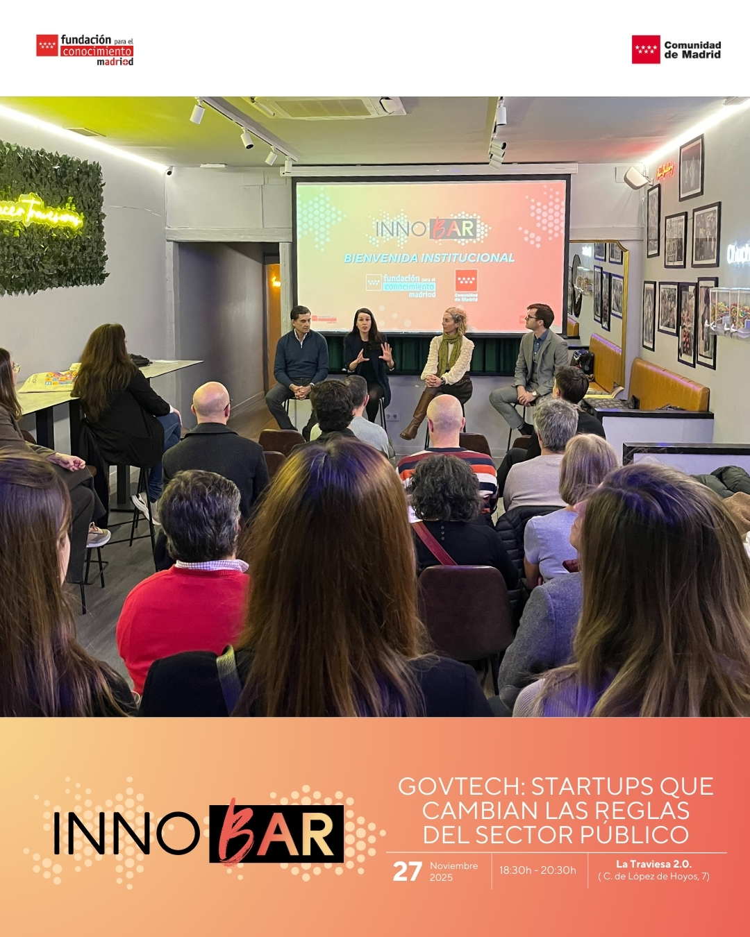 Innobar madri+d es una iniciativa que combina networking informal con contenido de alto valor sobre innovación y emprendimiento, en un formato más distendido y cercano que otros eventos institucionales.