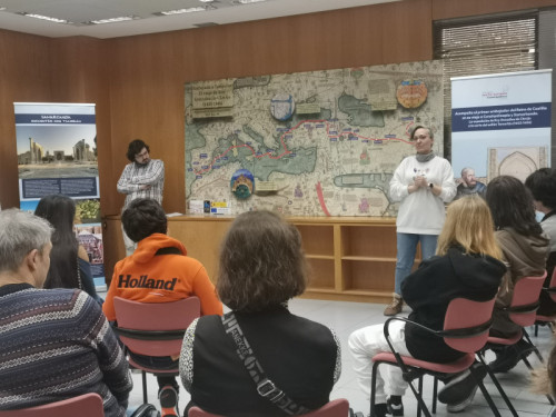 The visit consists of the talk: "Accompany the first ambassador of the Kingdom of Castile on his journey to Constantinople and Samarkand. The expedition of Ruy González de Clavijo to the court of Sultan Tamerlane (1403-1406)," by Raúl Estangüi, Carmen García Bueno, and Alfredo Calahorra. This talk is supported by a large map and several murals depicting Ruy Clavijo's journey.