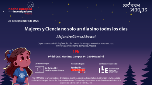 La actividad que proponemos este año 2025, para el viernes 26 de septiembre, es una charla de divulgación científica que impartirá la Dra. Alejandra Gámez Abascal, docente e investigadora en el departamento de Bioquímica y Biología Molecular Centro de Biología Molecular Severo Ochoa, Universidad Autónoma de Madrid.