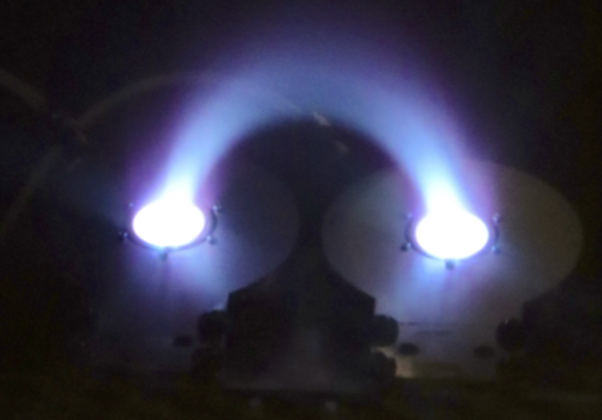 Cluster de dos propulsores de plasma sin electrodos creando un arco magnético, resultado del proyecto ERC-ZARATHUSTRA