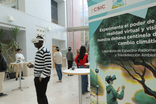 La actividad combina una conferencia divulgativa sobre la evolución y principales aplicaciones de las imágenes de satélite para el estudio de la vegetación, una visita a la estación experimental de Las Majadas de Tiétar (dehesa centinela) utilizando gafas de realidad virtual y un recorrido experimental por el laboratorio Speclab.