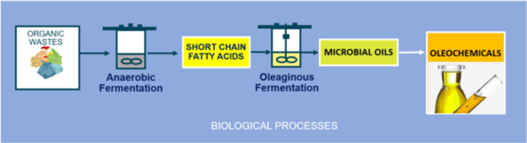 Esquema de producción de aceites microbianos propuesta en OLEOFERM
