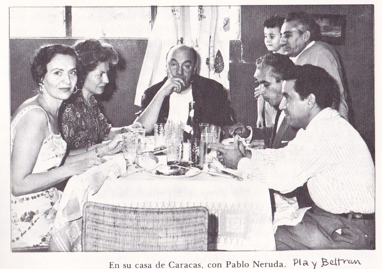 Pla y Beltrán, (a la derecha de pie), en Caracas con Pablo Neruda. 1959