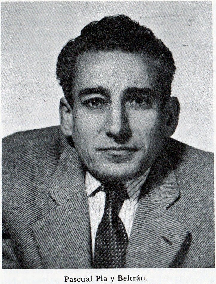 Pascual Pla y Beltrán, nacido en Ibi (Alicante) en 1908, representa, con caracteres personales especialmente sobrecogedores, la biografía dramática de una generación partida en dos por la guerra civil. De familia humildísima, comenzó a trabajar a los 7 años como pastor – como Miguel Hernández. Trasladada la familia a Alcoy, trabaja durante 8 años como obrero textil en una hilatura, un duro trabajo que le destrozó la espalda, dejándolo jorobado. Pasa a Valencia donde, de forma autodidacta, se va introduciendo en el mundo literario, publicando en 1929 su primer libro de poemas, La cruz de los crisantemos, de versos románticos con reminiscencias modernistas que no dejan adivinar lo que será su trayectoria posterior. (Nota 3).