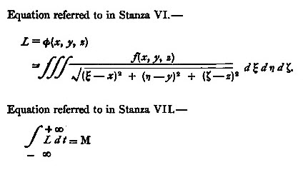 1. Habiendo mencionado El matemático enamorado en algunas de la presentaciones públicas de poesía y ciencia, tenía la sensación de que debía estar en la sección. Me había echado para atrás el hecho de no existir ninguna traducción al castellano. Me he atrevido a traducir, no la totalidad del texto, sino sólo cuatro de las ocho estrofas de que consta el poema. Espero que sirva hasta que alguien con mejor conocimiento del inglés realice la traducción completa del poema que, como digo, está por llegar.