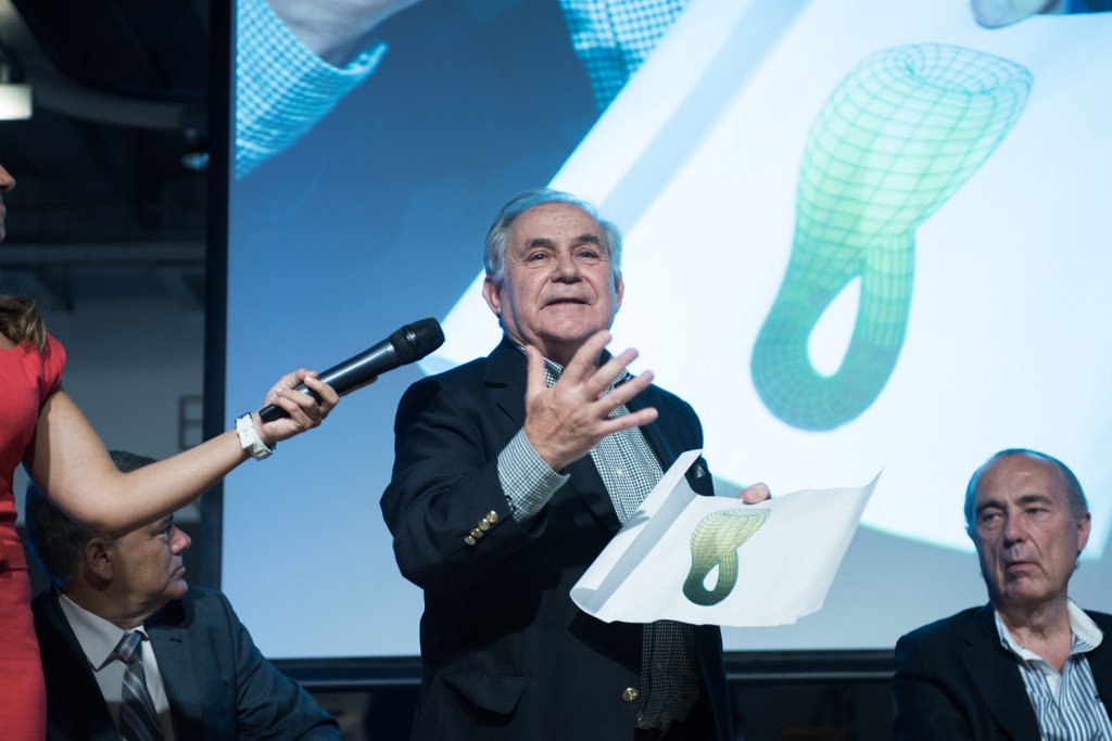 El público, embobado, no daba crédito, y escuchó sonriente el poema: “El círculo más vicioso / y la recta más coqueta, / se enrollaron en un tubo….” Fue un momento verdaderamente inolvidable para todos los que asistimos al acto.