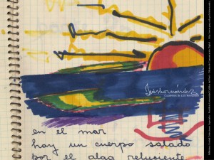 Es el poeta de éxito (o de camino hacia el éxito) que, después de publicar tres libros y empezar a destacar; desilusionado, quizás, por el panorama literario o vaya usted a saber por qué motivos, abandona la publicación formal y surge esa locura de la autoedición de ejemplares únicos, bellos cuadernos autógrafos ilustrados escritos con rotuladores que obsequiaba a sus amigos o, por mera simpatía, a personas diversas.