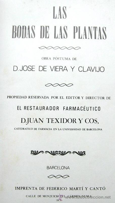 El texto completo de Las bodas de las plantas está disponible en internet en dos versiones. En primer lugar, la edición original de 1873, (que hemos mencionado), en la web Memoria Digital de Canarias, con la introducción del editor Juan Teixidor y Clos en la que se da noticia de la biografía de Viera e incluye un cuadro sinóptico general con los caracteres de las clases de flores según su forma de reproducción en el que, a continuación de sus nombres, añade los de las plantas citadas por Viera en el poema.
