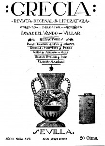 Cinematógrafo, que aúna dinamismo, audacia y frescura, fue uno de los primeros poemas en que el cine es protagonista absoluto. Fue publicado en el número XVII, de 30 de mayo de 1919, de la revista Grecia. Su autor fue el gran poeta Pedro Garfias, nacido en 1901, que figuró entre los primeros y más notables poetas del ultraísmo, siendo más adelante paradigma de la poesía social y política en la guerra civil española y acabó sus días en el amargo exilio republicano en México, donde falleció en 1967.