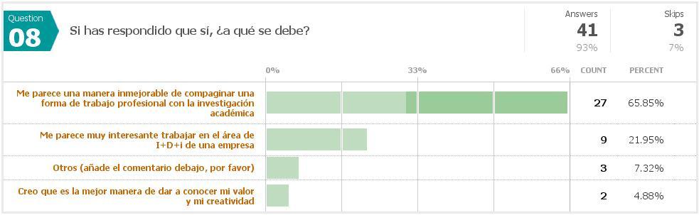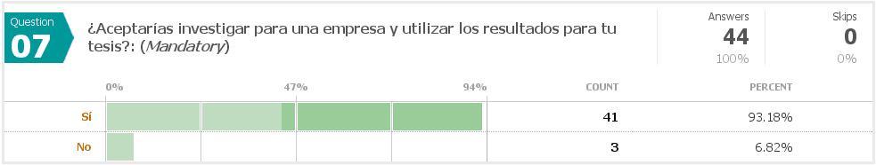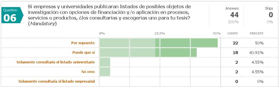 - 1. Elijo esa opción [que tenga una clara aplicación empresarial] ya que pienso que las tesis deber ir dirigidas a resolver problemas de la sociedad «española», no artículos científicos que sirven para bien poco. Sin embargo, el tema ha de ser sugerente dentro de mis intereses.