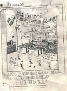 Pero Eguillor, no sólo destacó por el Humor Gráfico, eje central de la exposición que puede verse hasta el 9 de octubre en la sala BBK, de 10 a 14 y de 16:30 a 21:00 horas, y recoge obra publicada en diario “El Correo” durante el año 1995. Eguillor, que fue un innovador y sobre todo, un experimentador, como decíamos no sólo destacó en el campo del humor gráfico, sino también en la ilustración infantil, área en la que recibió el premio Nacional de Ilustración Infantil en 1983. En este mismo área podemos citar algunos de los títulos ilustrados por Juan Carlos Eguillor, como “Dola, su casa y sus amigos”, “Poeta en Nueva York” de Neruda, por citar sólo dos ejemplos. También fue pionero en el videoarte, dónde cosechó un gran éxito con la obra “Menina”, exhibida en 1986.