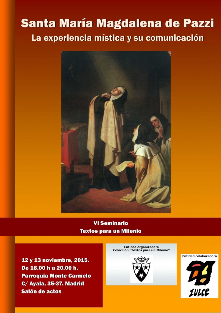 PRÓXIMAS ACTIVIDADES MIEMBROS IULCEJavier Revilla Canora21 octubre 2015Actividad Científica, Divulgación científica, Educación, estudios de postgrado, Eventos, General, Instituto Universitario La Corte en Europa, Investigaciones actuales, Noticias, Seminarios El Instituto Universitario La Corte en Europa participa en el VI SEMINARIO TEXTOS PARA UN MILENIO «Santa María Magdalena de Pazzi. La experiencia mística y su comunicación», 12 y 13 de noviembre de 2015. Compartir: