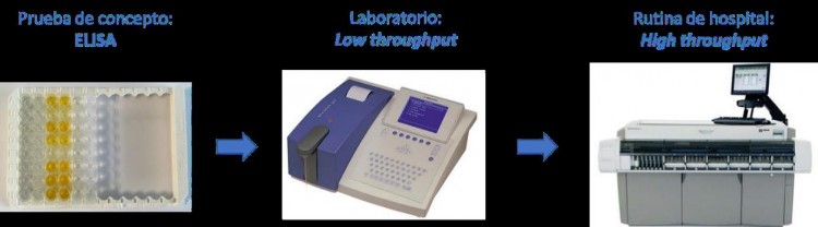 Este ensayo para la determinación de ApoE4 puede ser muy fácilmente implementado dentro de la rutina clínica, ya que utiliza la misma muestra que otras pruebas de laboratorio de rutina, sin ningún otro procesamiento, y que puede ser ejecutado en cualquier analizador químico, incluyendo los analizadores de química clínica de alto rendimiento presentes en hospitales y laboratorios clínicos.