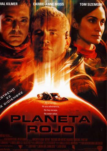 Se trata de Planeta Rojo (2000), producción cinematográfica en la que una misión viaja a Marte con el objeto de ver qué ha ocurrido con las algas que se habían sembrado varios años antes para terraformar el planeta. Después de muchas peripecias, en esta película, alabada por los expertos debido a lo logrado de los efectos especiales con el incendio en ausencia de gravedad y al cuidado con que habían tratado los aspectos técnicos aeroespaciales, los supervivientes descubren