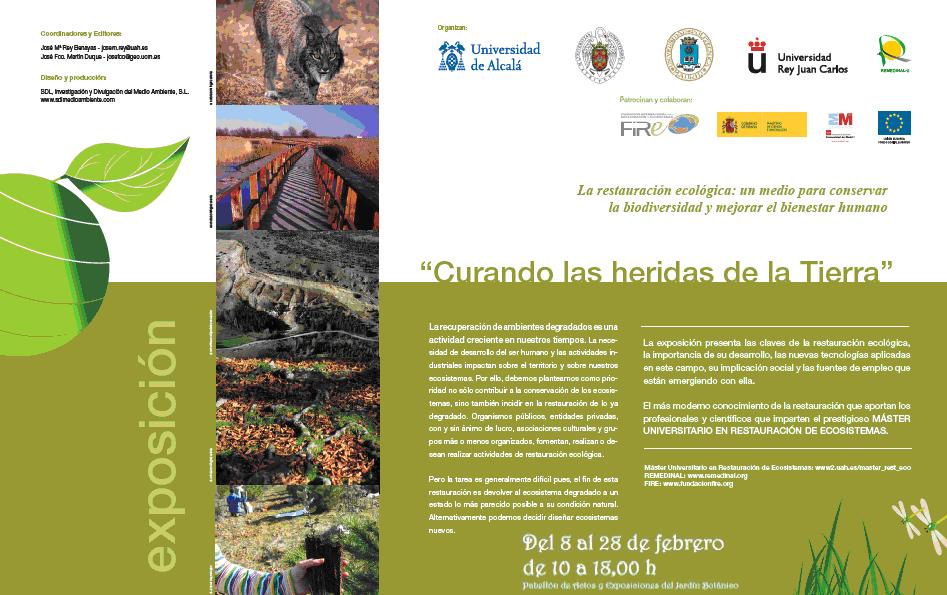 Esta exposición ha sido producida por el prestigioso Máster Universitario en Restauración de Ecosistemas de las universidades madrileñas UAH, UCM, UPM y URJC, y el Programa REMEDINAL-2 de Actividades de I+D entre Grupos de Investigación de la Comunidad de Madrid, y cofinanciada por la Fundación Internacional para la Restauración de Ecosistemas (FIRE), el Ministerio de Ciencia e Innovación (MICINN), la Comunidad de Madrid y la Unión Europea a través de FSE y FEDER.
