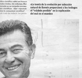Con la celebración del centenario de Darwin, los darwinistas están que tiran la casa por la ventana. En los domingos de ABC, de anteayer, 1 de Marzo, Ayala se expresaba así: La Teoría de Evolución por Selección Natural de Darwin proporcionó a los teólogos el «eslabón perdido»en la explicación del mal en el mundo. Una frase muy complicada y resbaladiza porque, partiendo de suposiciones complejas, emplea juegos de palabras arriesgados. Al menos dos suposiciones metafísicas:
