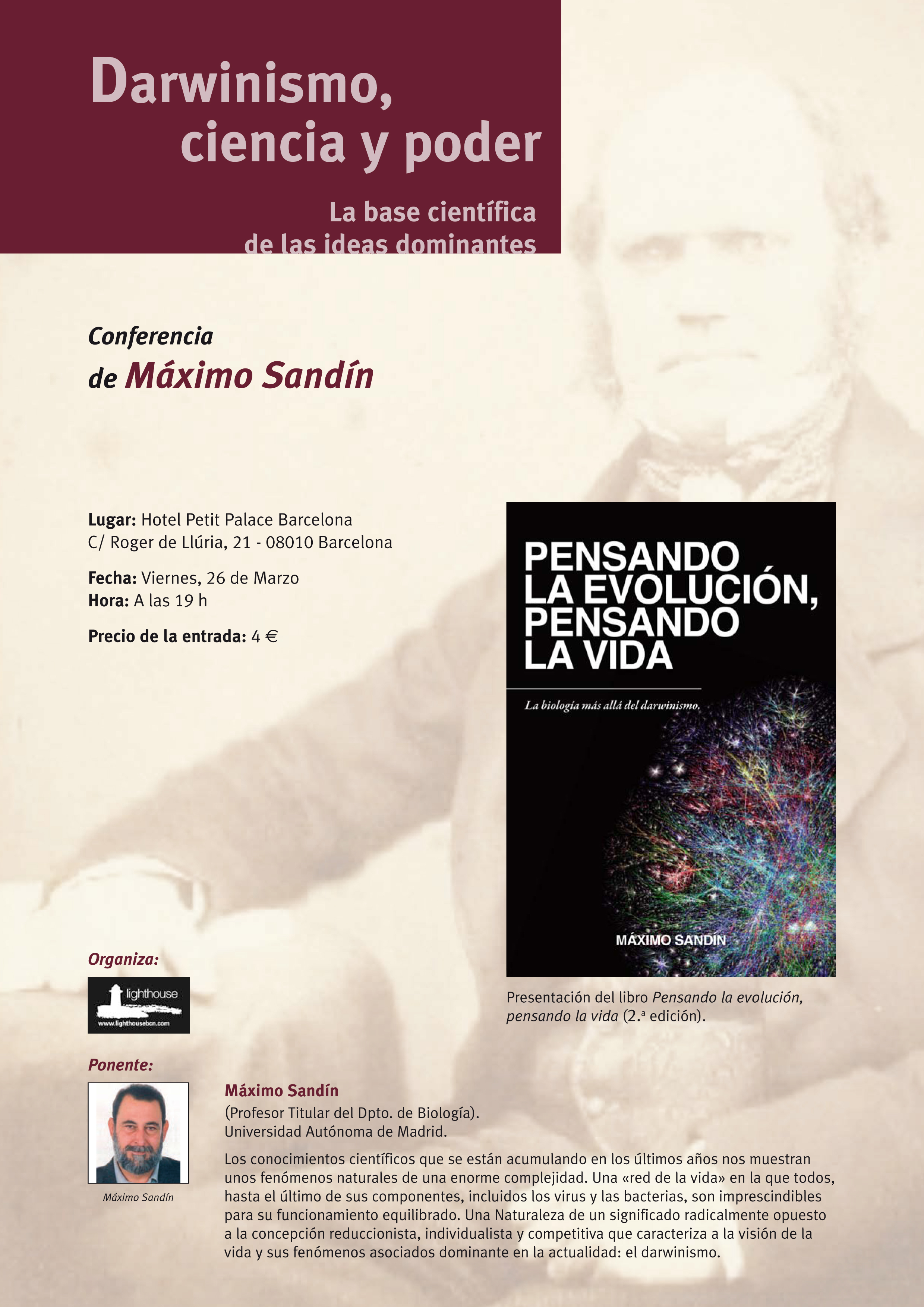 Darwinismo, Ciencia y Poder: Conferencia de presentación de la segunda edición del libro Pensando la evolución, pensando la vida de Máximo Sandín (Ediciones Crimentales).