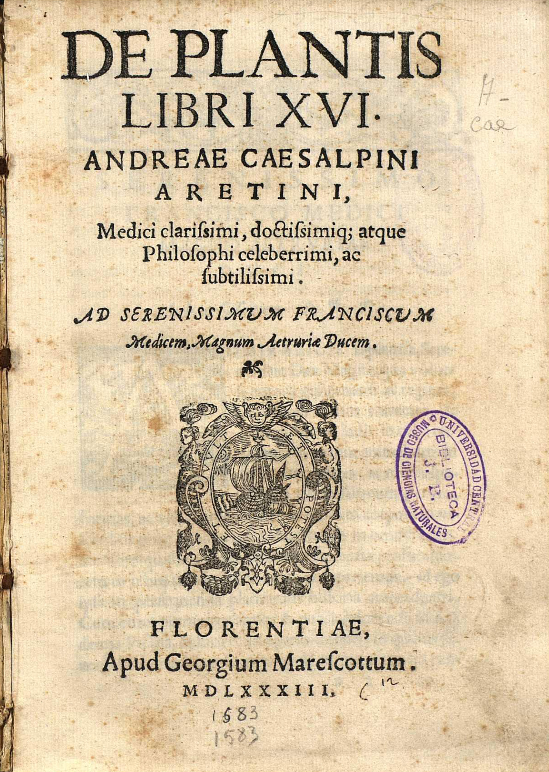 18: Caesalpinus A 1583. De plantis libri XVI: XXXVIII, 621. Florentiae Marescottum