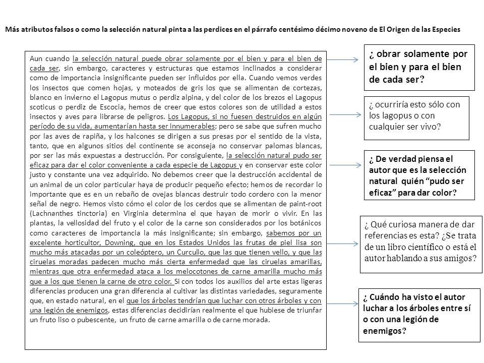 Más atributos falsos o como la selección natural pinta a las perdices en el párrafo centésimo décimo noveno de El Origen de las Especies