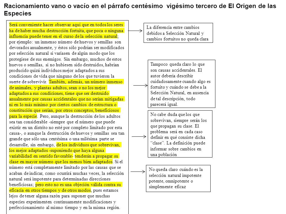 Racionamiento vano o vacío en el párrafo centésimo vigésimo tercero de El Origen de las Especies