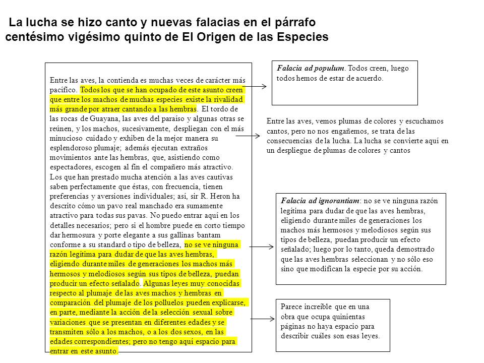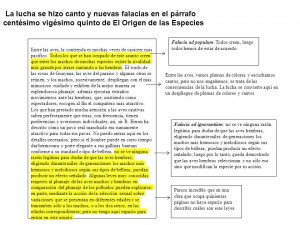 La lucha se hizo canto y nuevas falacias en el párrafo centésimo vigésimo quinto de El Origen de las Especies
