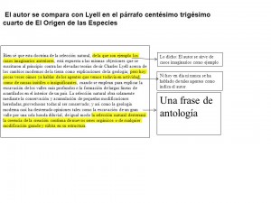 El autor se compara con Lyell y descubre el objetivo de su obra en el párrafo centésimo trigésimo cuarto de El Origen de las Especies