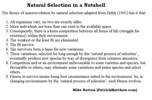 En la imagen se pretende una definición de la Selección Natural. Está tomada de unos comentarios del Dr Sutton en Twitter, pero podría estarlo de cualquier otro sitio.