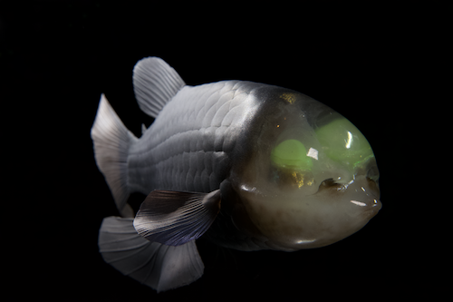 En el blog Vistalmar  describen como recientemente, «Robison y Reisenbichler realizaron toms de video con un ROV que mostraron generalmente a estos peces flotando inmóviles en el agua, con los ojos de un vivo color verde brillante ante los focos del ROV. El vídeo también mostró una característica anteriormente no descrita de estos peces: sus ojos están rodeados por una forma transparente, llena de líquido protector que cubre la parte superior de la cabeza del pez.»