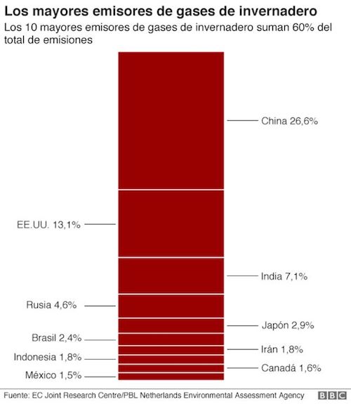 “Estima, que con las reducciones nacionales planteadas en el Acuerdo de París, la temperatura media aumentaría entre 2,9 y 3,4 grados, cuando los expertos estiman que no debería subir más de 1,5 grados. Por tanto, para no superar esta cifra, las propuestas de los países para frenar el cambio climático deberían multiplicarse por cinco, dicen los expertos, o por tres para que no aumente más de 2 grados.”