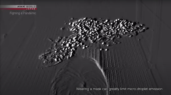 Esto es cierto para proteger a las personas sanas, pero especialmente para las personas infectadas: usar una mascarilla atrapa la mayoría de las gotas y también evita que formen una nube que permanece en el aire, como vimos en este video.