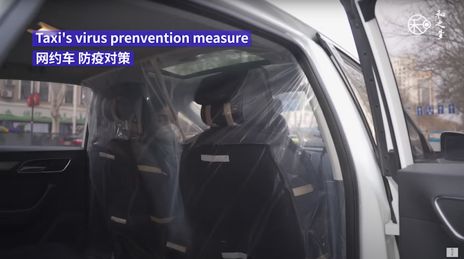Este video muestra cómo los entornos se han adaptado en China. Por ejemplo, un restaurante usa la mitad de las mesas como un amortiguador y no permite que las personas se sienten juntas a comer, o que las personas se sientan una frente a la otra.