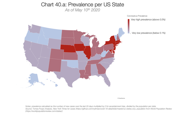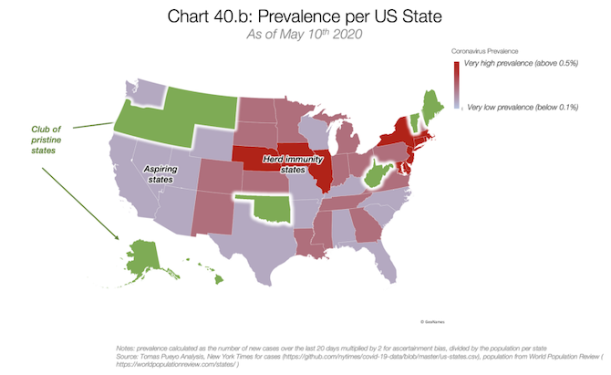 Podríamos imaginar que los estados danzantes se abran para viajar entre ellos, pero eviten que los visitantes se infecten o fuercen una cuarentena, como ya lo hacen Hawai y Alaska. Estados como California, Nevada o Washington están esforzándose seriamente para llegar a un nivel de prevalencia lo suficientemente bajo como para ser aceptado en el club.