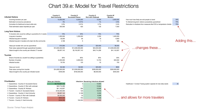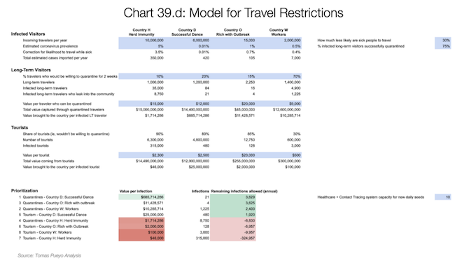 El cálculo es realmente el mismo: ¿cuál es el beneficio por turista que obtienes y cuál es el coste por infección? Reciba viajeros de los países con el mejor beneficio por infección importada, hasta el número máximo que decida que su sistema de atención médica puede atender, y siempre que los beneficios superen los costes.