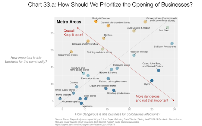 - Deberíamos escalonar la reapertura de las empresas. La prioridad más alta siempre son los supermercados, bancos, servicios financieros y tiendas en general, mientras que la más baja son los gimnasios, cafeterías, pastelerías donde se come, bares y clubes.