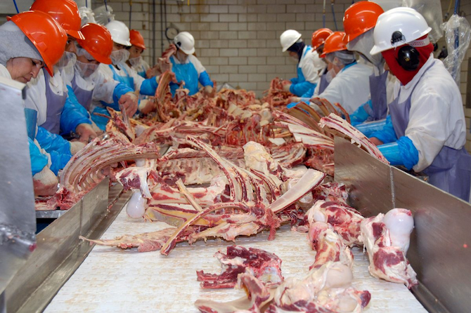 Trabajadores de Planta de procesamiento de carne en Estados Unidos ( USDA ). Fuente.