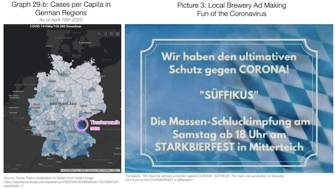 El otro brote gran brote en Alemania también se debió a una fiesta. El distrito alemán de Tirschenreuth, con 600 casos, tiene la mayoría de los casos per cápita en el país después de las fiesta de la cerveza.