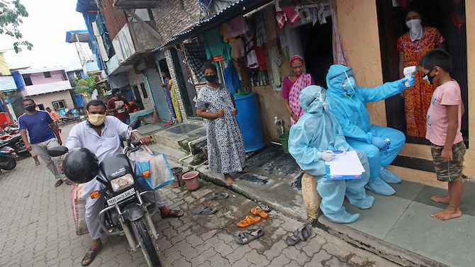 Toma de temperatura en Bombay. BHATT/NURPHOTO VIA GETTY IMAGES