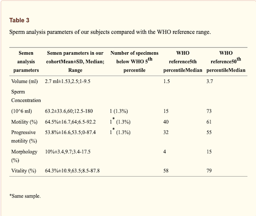“Con la excepción de dos muestras (2 de 75, 2,6%), una oligozoospérmica y otra con motilidad reducida, ninguno de los hombres vacunados en nuestro estudio produjo resultados anormales. Esto constituye un porcentaje significativamente menor de oligozoospermia que el reportado en varones fértiles por la OMS (5%) (Cooper et al., 2010), por Guzick et al. (∼5%), o en SARS-CoV-2 recuperado y activo. pacientes (25-40%) (Gacci et al., 2021; Li et al., 2020). Por tanto, las cifras de nuestro estudio se esperan en una población fértil normal y no reflejan ningún efecto perjudicial causal de la vacunación COVID-19. Como tal, nuestros resultados combinados con los reportados previamente por González et al, sugieren que la vacunación es segura sin un efecto perjudicial significativo sobre los parámetros de los espermatozoides.”