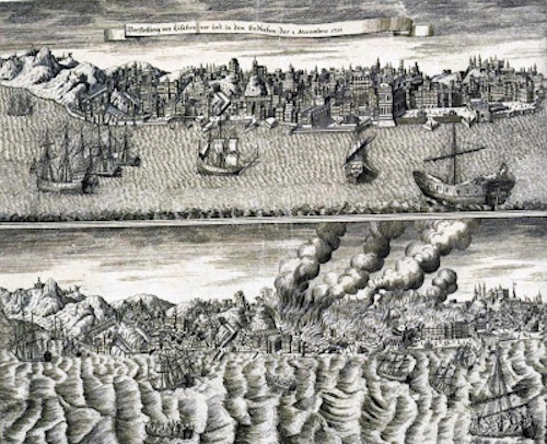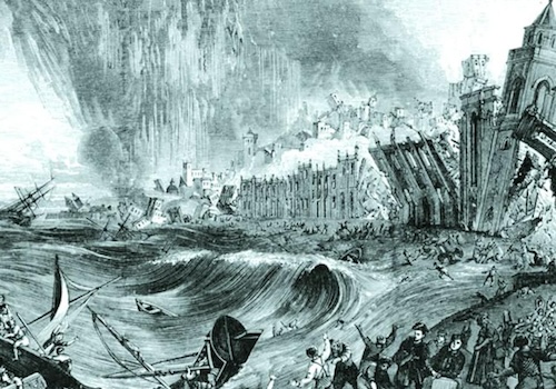 Grabado del siglo XVIII con el tsunami de Cádiz.