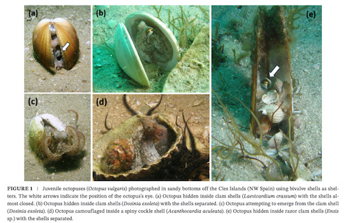 Durante ocho inmersiones realizadas entre mayo de 2022 y junio de 2023 en las Islas Cíes (Parque Nacional Marítimo-Terrestre de las Islas Atlánticas de Galicia), un equipo de investigadores del CSIC, encontró a nueve juveniles de O. vulgaris, con longitudes de manto entre 33 y 42 mm. Todos ellos habitaban conchas vacías, transformadas en pequeños refugios personalizados. Este hallazgo confirma que, incluso en las primeras etapas de vida, los pulpos ya muestran una capacidad notable para adaptarse y modificar su entorno inmediato.