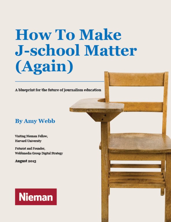 Amy Webb identifica seis retos ocultos a los que se enfrentan los educadores de periodismo hoy en día y ofrece un nuevo enfoque para la currícula y la educación en el aula. Webb, fundadora de la empresa de estrategia digital Webbmedia Group, realizó un proyecto de investigación como Knight Visiting Nieman Fellow en la Universidad de Harvard.