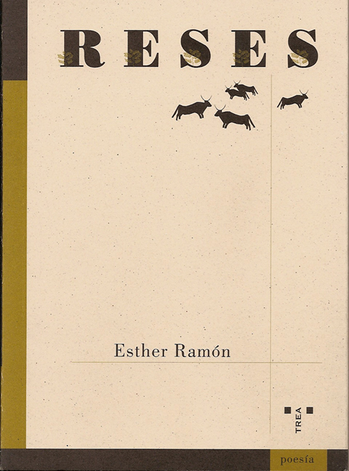 Leo Reses y escribo. Esther Ramón abre paréntesis en sus versos y no los cierra. Deja que la voz se prolongue hasta los márgenes inferiores de la página… galopando como los caballos de sus poemas. Las moscas amarillas que revolotean sobre los morrillos de las reses repiten una y otra vez la misma espiral, la tejen. Y de los libros alusiones: “Dobla la página por la mitad: las palabras caen al centro y de deshacen”.