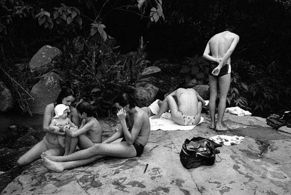 Por fin la Casa de América eleva el nivel de las exposiciones fotográficas, al menos por lo que respecta a su colaboración con PHotoEspaña. Mauro Restiffe nos ofrece imágenes de Sao Paulo, pero no es una exposición sino varias en una, al menos tres: espacios interiores, espacios exteriores y tipos, esos seres humanos (nosotros) que pululamos por las calles en el antes y el después de la ocupación (decir trabajo es demasiado en los tiempos que corren). El gran formato (2×1,5 m), el blanco y negro y el grano son tres elementos esenciales para ver la muestra de otra manera, no solo por los contenidos. Mirante (Mirador) da título a la exposición, una bellísima imagen de familia en un espacio natural donde el agua domina la escena sin estar presente.