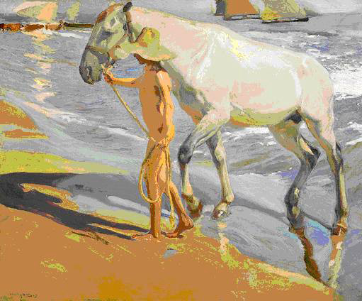 El baño del caballo. Óleo sobre lienzo