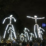 En el Paseo del Prado, colgados entre los árboles, se encontraban los Voyageurs, hombres de luz y dos pájaros que volaban entre las ramas. Para terminar, junto al Jardín Botánico, unos cubos de luces brillantes que cambiaban en el momento de tocarlos; formas geométricas entre los árboles y ramos de flores gigantes con mil reflejos y colores cambiantes.