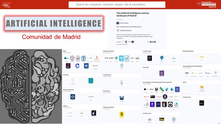 El Landscape “Artificial Intelligence de la Comunidad de Madrid” ha sido elaborado por Jesús Contreras, director de innovación digital en EIT Digital Madrid, a partir de los datos de la plataforma del ecosistema Startup Radar madri+d en Dealroom.