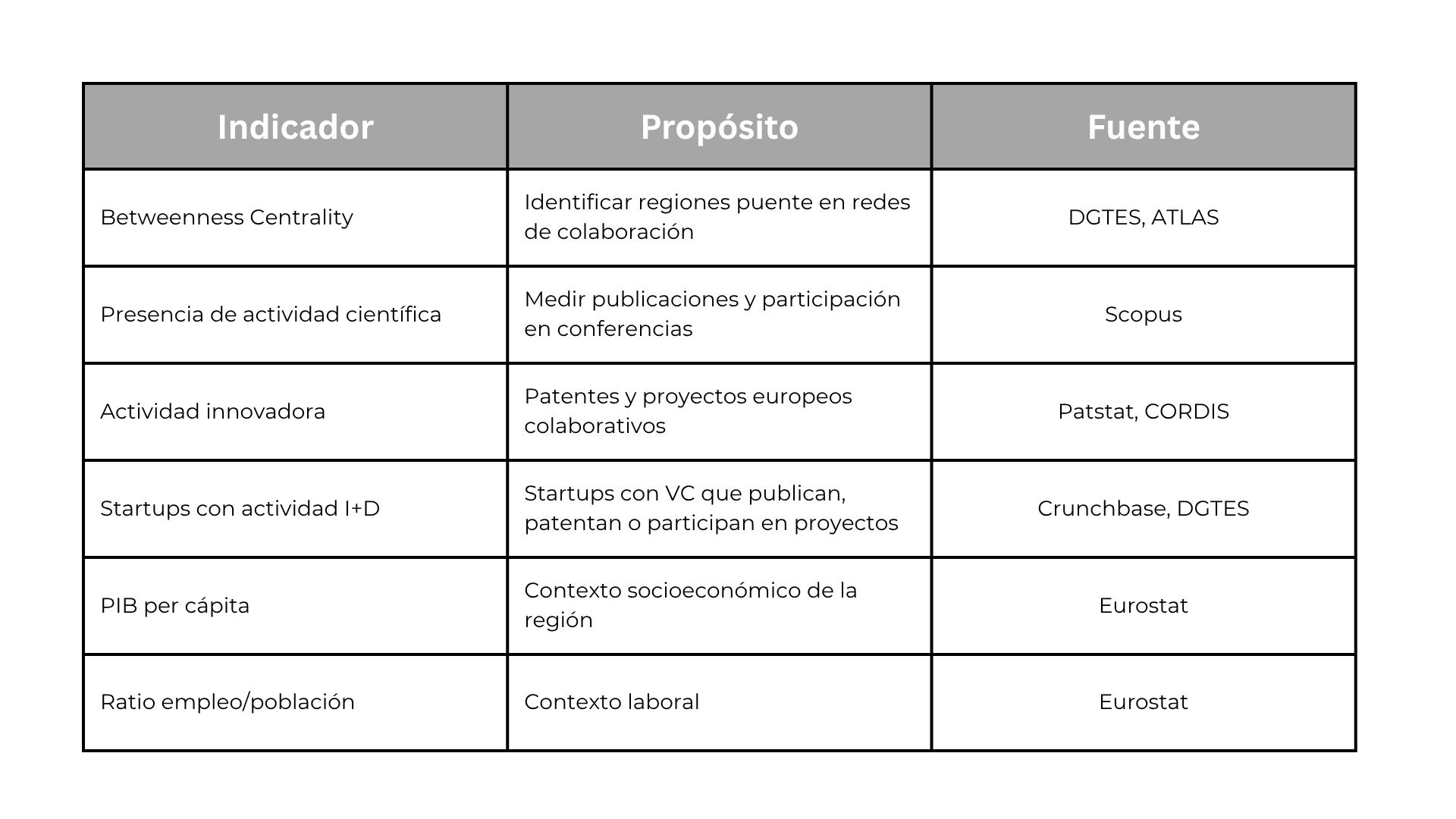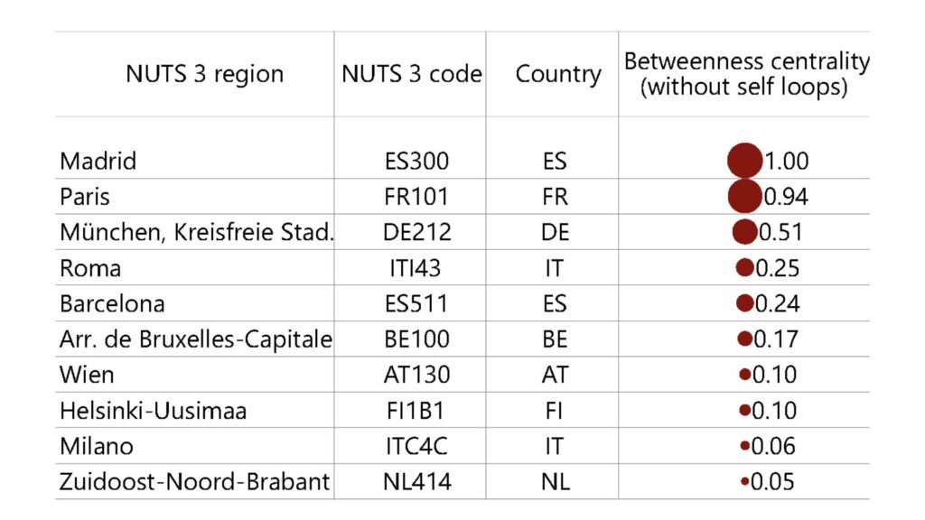 Para identificar las regiones más “estratégicas” como puentes clave en la circulación del conocimiento europeo, el informe evalúa: